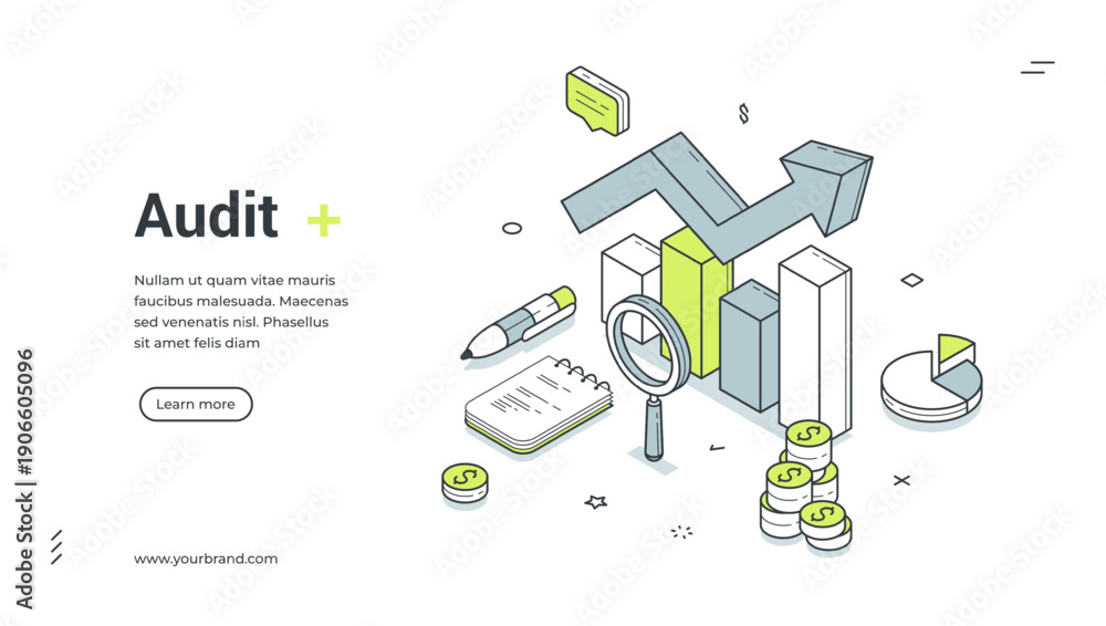 Web banner for business audit service. Isometric vector illustration with financial graph. Modern template for a landing page about data analysis and company reports