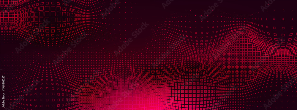 HOME>Fototapeta>Abstract red tech background with seamless geometric pattern on black background. Vector realistic illustration of futuristic wallpaper design with convex digital grid, data breach warning display