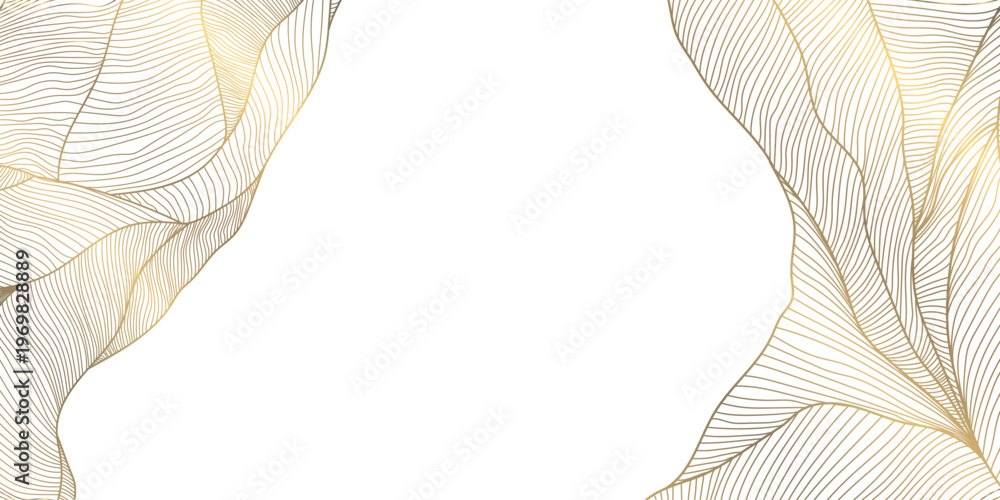 Luxury abstract gold wave line pattern on white background, elegant curves, flowing shapes. Premium vector design, Japanese ornament, cosmetic packaging, posters, wallpapers, covers.