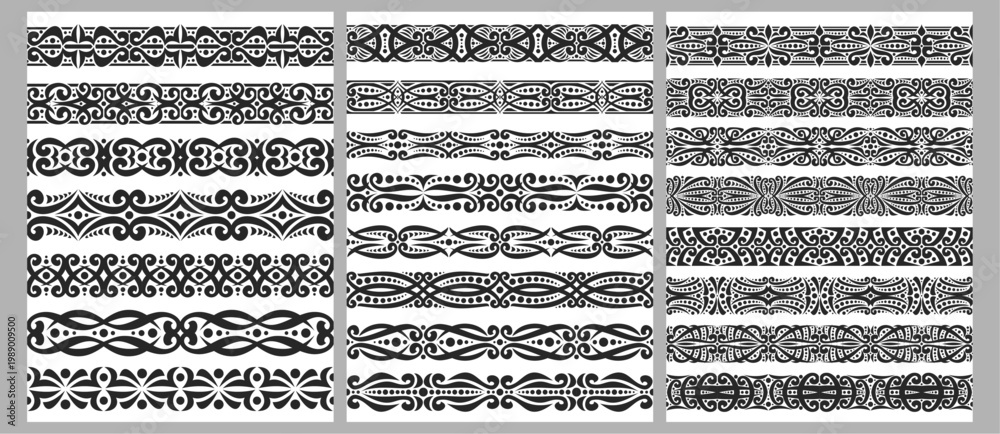 Vector set of black Seamless Borders