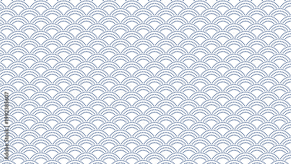 シンプルな破線の青海波のパターン 鮫青海波 縁起の良い和柄 和風の背景装飾イラスト 日本の伝統文様 吉祥 点線