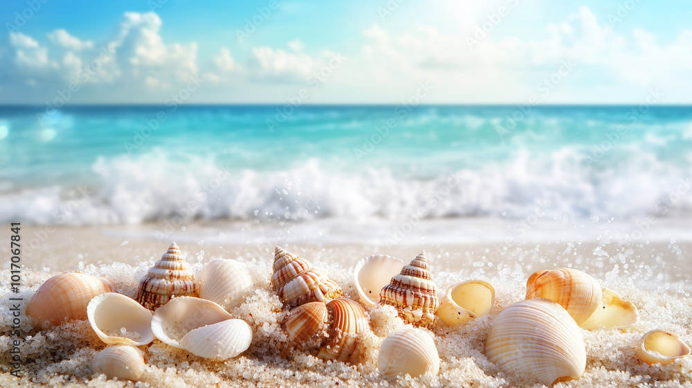 Delikatne muszle rozsypane na brzegu morza tworzą malowniczy widok. Leżą na złocistym piasku, otoczone delikatnymi falami oceanu.