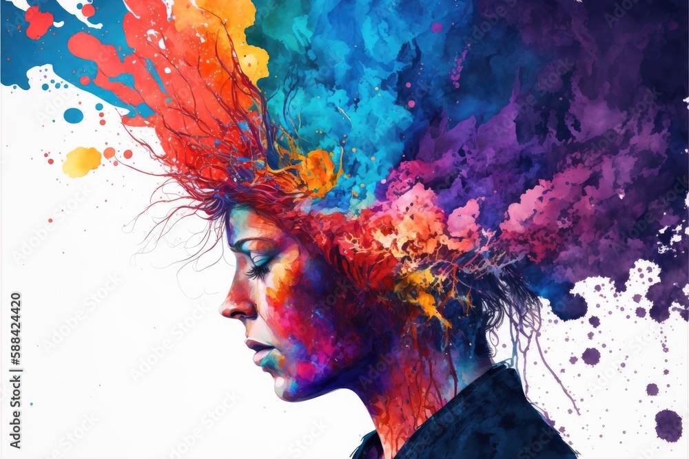 Explosion of colors out of an artist in concept of creative and art inspiration. Element of blending mixed watercolor technique. Finest generative AI.