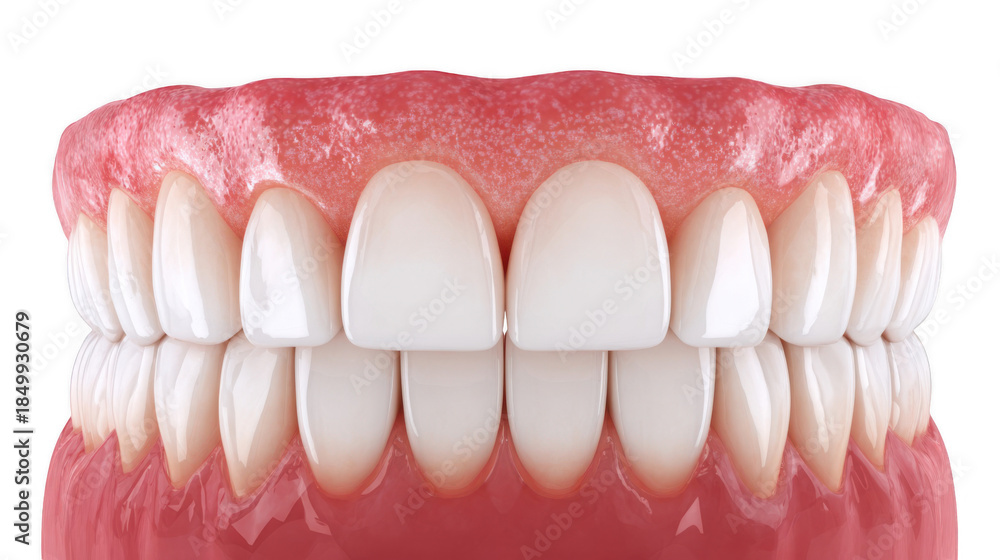 Displaying perfect white teeth alongside swollen gums highlighting gingivitis, emphasizing the importance of dental hygiene and the impact of oral health issues on well being