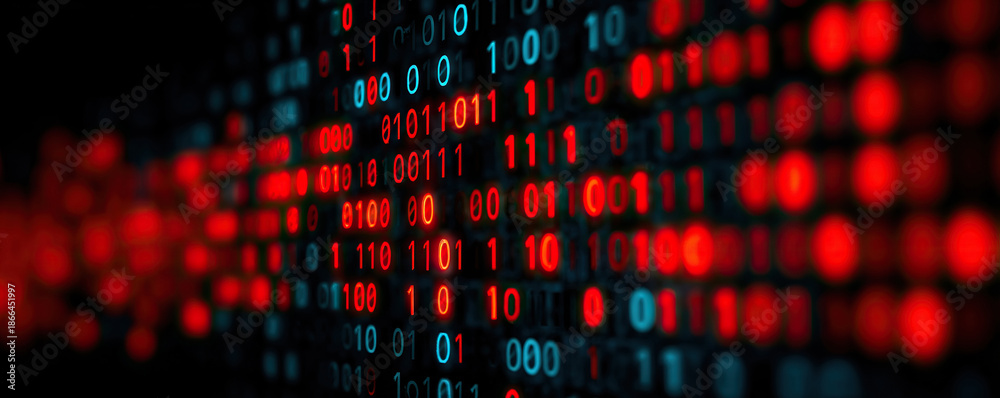 Futuristic binary code background for data transmission and cybersecurity concepts