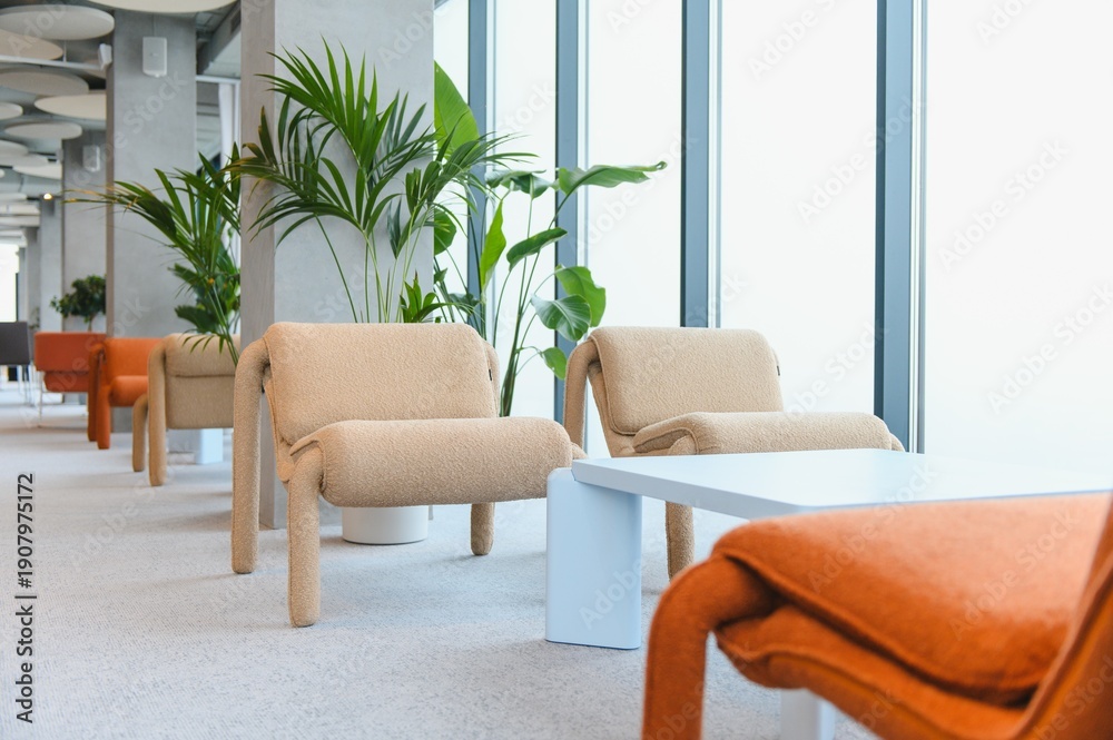 Modern office waiting area with minimalist seating