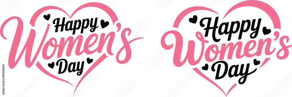 "Happy Women's Day" Pink and Black Script Text Design with Heart Shape Vector Graphic