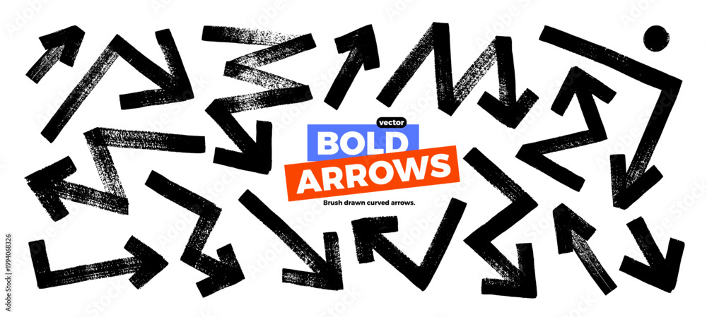 HOME>Obrazy na płótnie Canvas>Bold and thick grunge straight and zigzag arrows. Hand drawn vector png bold brush drawn arrows. Vector inky illustration. Gold geometric lines and shapes. Folded zigzag lines in different direction.