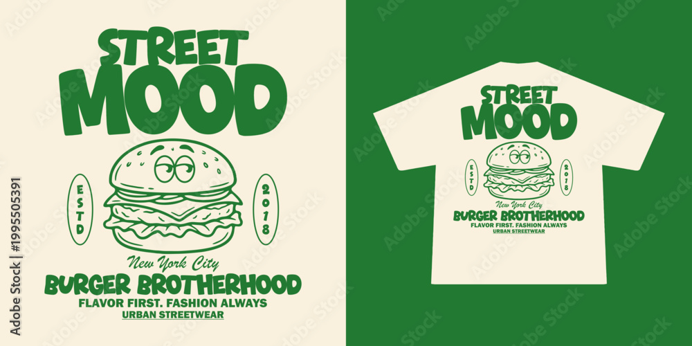 Funny cartoon character of burger Graphic Design for T shirt Street Wear and Urban Style